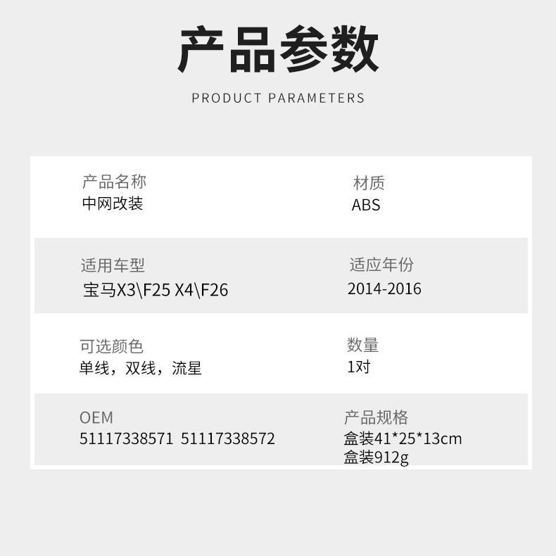 บีเอ็มดับเบิลยู X3 X4 F25 F26 ชุดแต่งกระจังหน้ารับอากาศ วัสดุพลาสติก ABS ปี 2014-2016