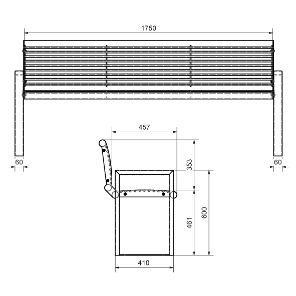 ม้านั่งไม้2ที่นั่งทำจากไม้ระแนงพร้อมดีไซน์แบบเปลือยหลังสำหรับสวนหน้าบ้านสวนริมสระน้ำหรือดาดฟ้าสไตล์คาร์บอไนซ์