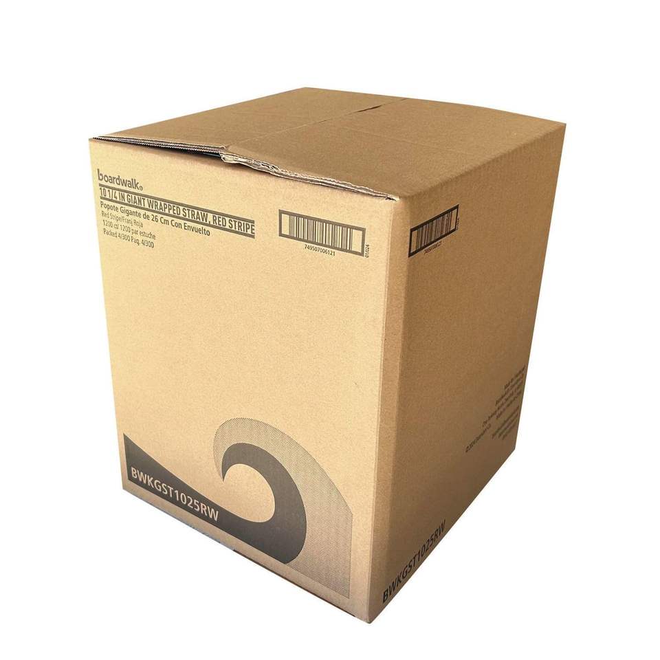Boardwalk 10.25\" Red/White Striped Polypropylene Drinking Straws Individually Wrapped Giants Case of 1,200