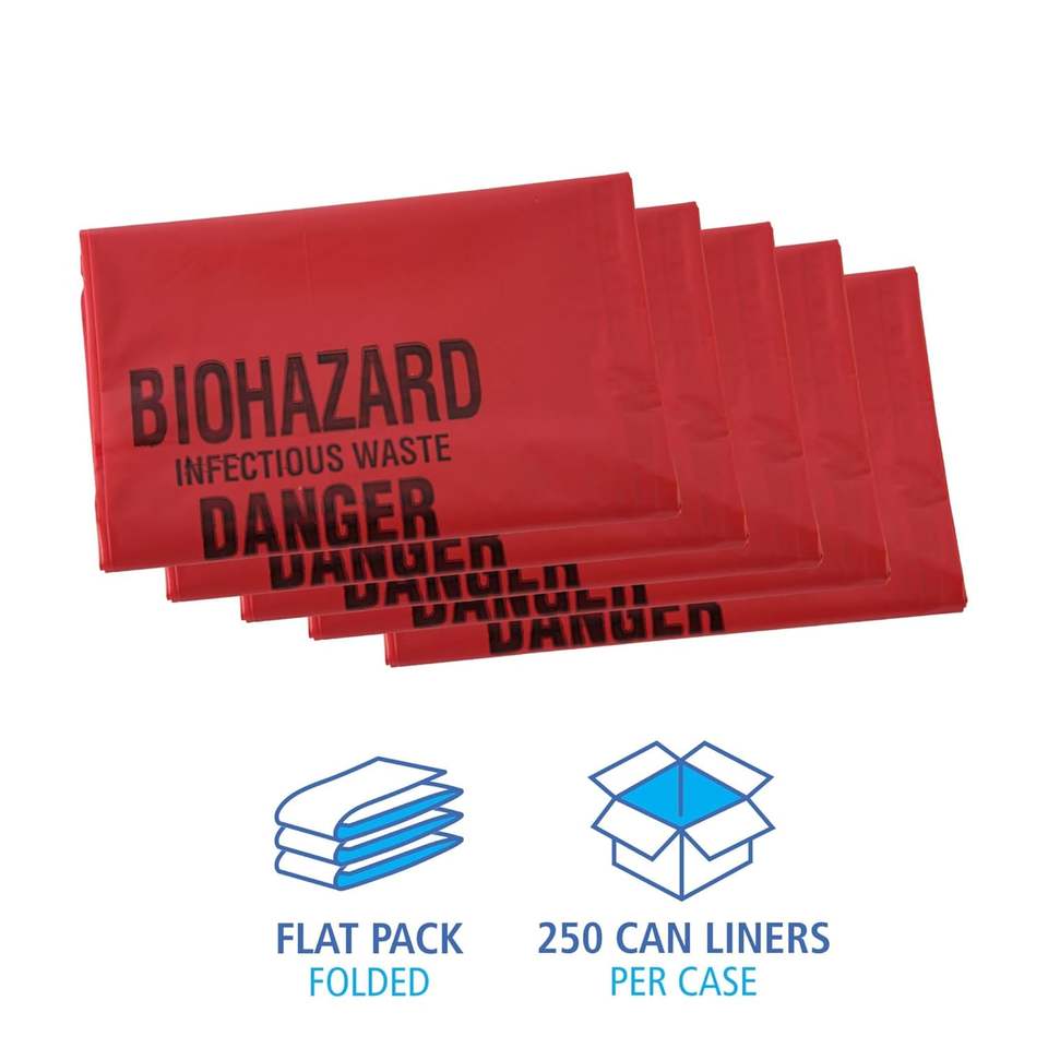 ถุงขยะสำหรับงานดูแลสุขภาพแบบเส้นตรงความหนาแน่นต่ำ ขนาด 16 แกลลอน ยี่ห้อ Boardwalk ความหนา 1.3 มิล ขนาด 24 x 32 นิ้ว สีแดง บรรจุ 250 ใบ/กล่อง - ถุงขยะสำหรับใช้ในครัวเรือน