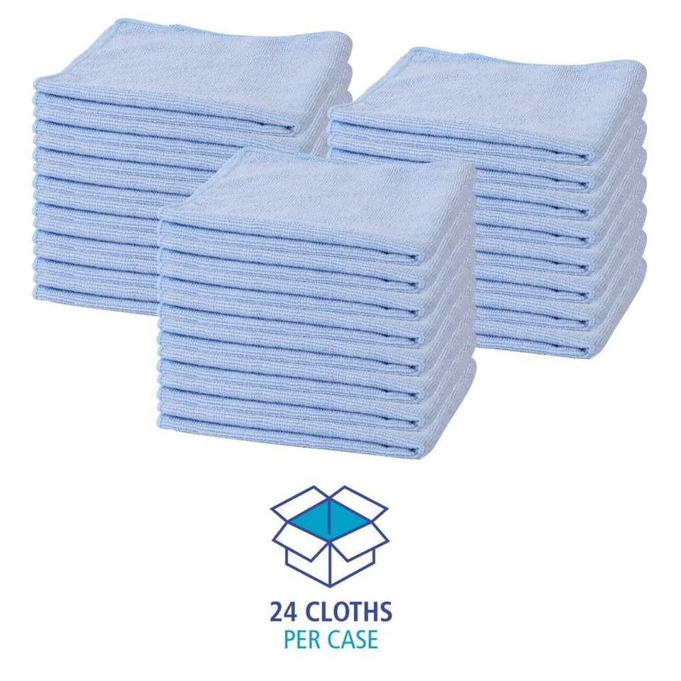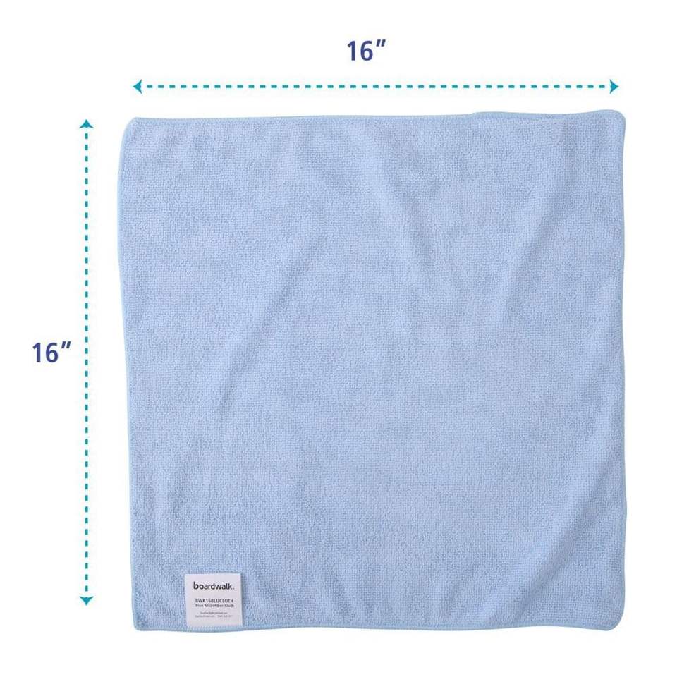 ผ้าไมโครไฟเบอร์สีน้ำเงินขนาด 16x16 นิ้ว ยี่ห้อ Boardwalk สำหรับทำความสะอาดรถยนต์ แห้งเร็ว แพ็ค 24 ผืน ผลิตจากวัสดุโพลีเอไมด์