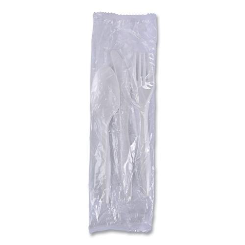 ชุดช้อนส้อมมีดพลาสติกสีขาวแบบใช้แล้วทิ้ง 250 ชิ้น บรรจุภัณฑ์แบบห่อสำหรับงานปาร์ตี้