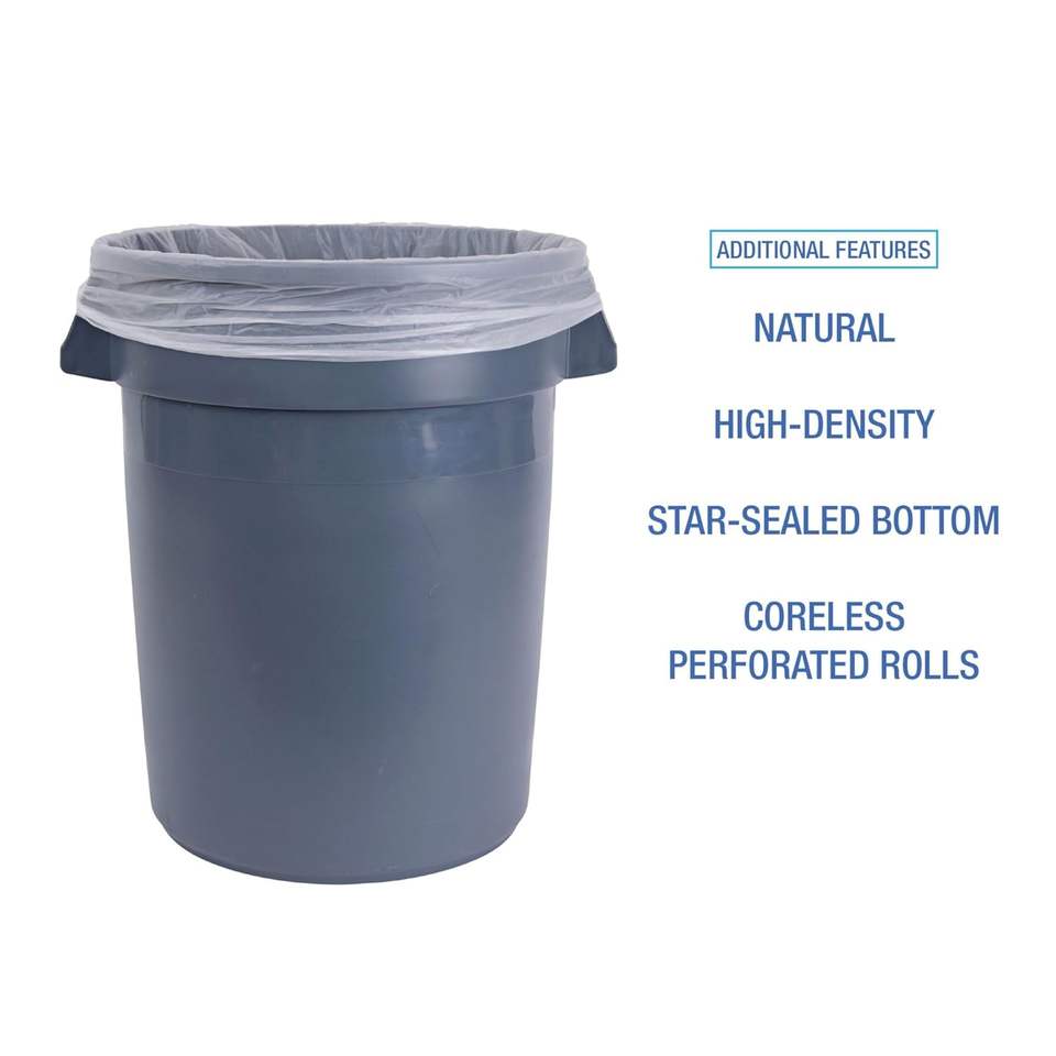 ถุงขยะอุตสาหกรรมแบบม้วนไร้แกน ขนาด 30 แกลลอน หนา 16 ไมครอน ยี่ห้อ Boardwalk บรรจุ 25 ถุง/ม้วน สีธรรมชาติ ขนาด 30 x 37 นิ้ว สำหรับใช้ในเชิงพาณิชย์