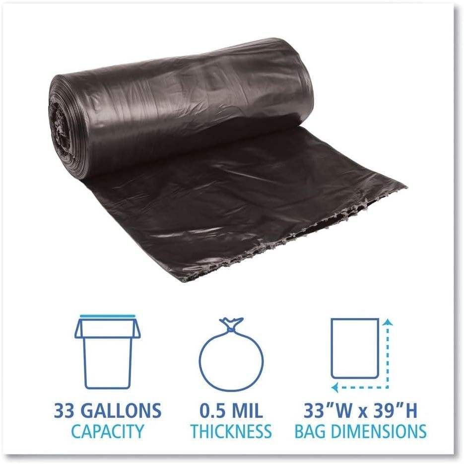 ถุงขยะแบบม้วน Boardwalk 3339H เกรดกลาง ขนาด 33x39 นิ้ว ความจุ 33 แกลลอน หนา 0.50 มิล สีดำ 25 ถุง/ม้วน 8 ม้วน/กล่อง
