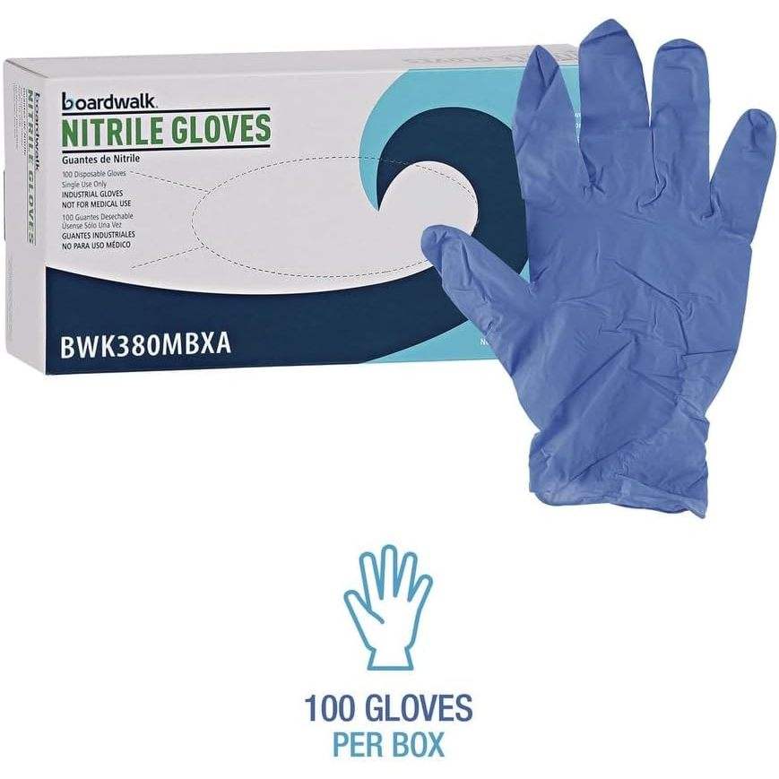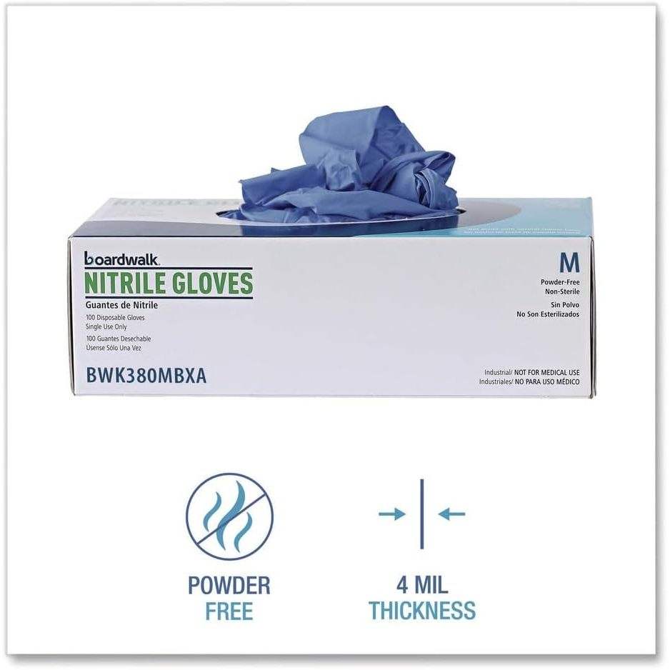 ถุงมือไนไตรล์แบบใช้แล้วทิ้ง บอร์ดวอล์ค ซีรีส์ 380 สีน้ำเงิน ขนาดกลาง 9.5 นิ้ว หนา 4 มิล ไม่ผสมแป้ง สำหรับงานทั่วไป บรรจุ 100 ชิ้น/กล่อง