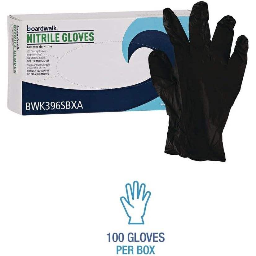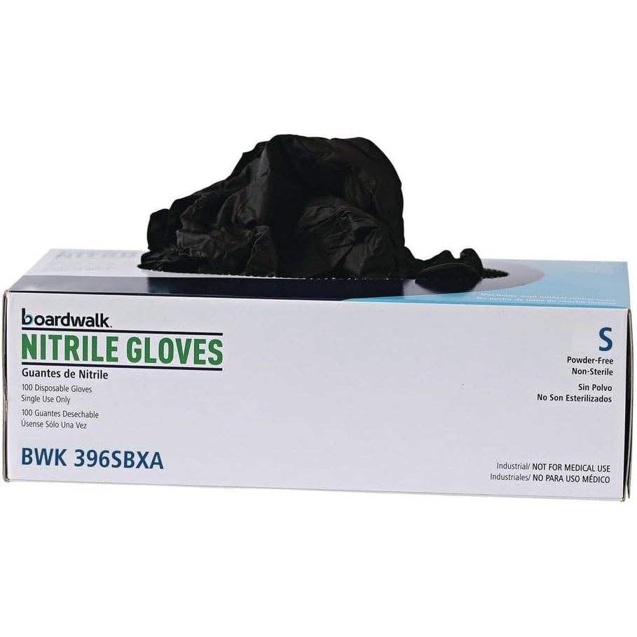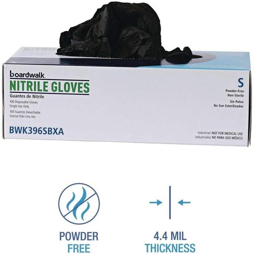 ถุงมือไนไตรล์สีดำแบบไม่มีแป้ง ยี่ห้อบอร์ดวอล์ค รุ่น 396 สำหรับผู้ใหญ่ทุกเพศ หนา 4.4 มิล ยาว 9.5 นิ้ว แบบใช้แล้วทิ้ง ขนาดเล็ก บรรจุ 100 ชิ้น/กล่อง