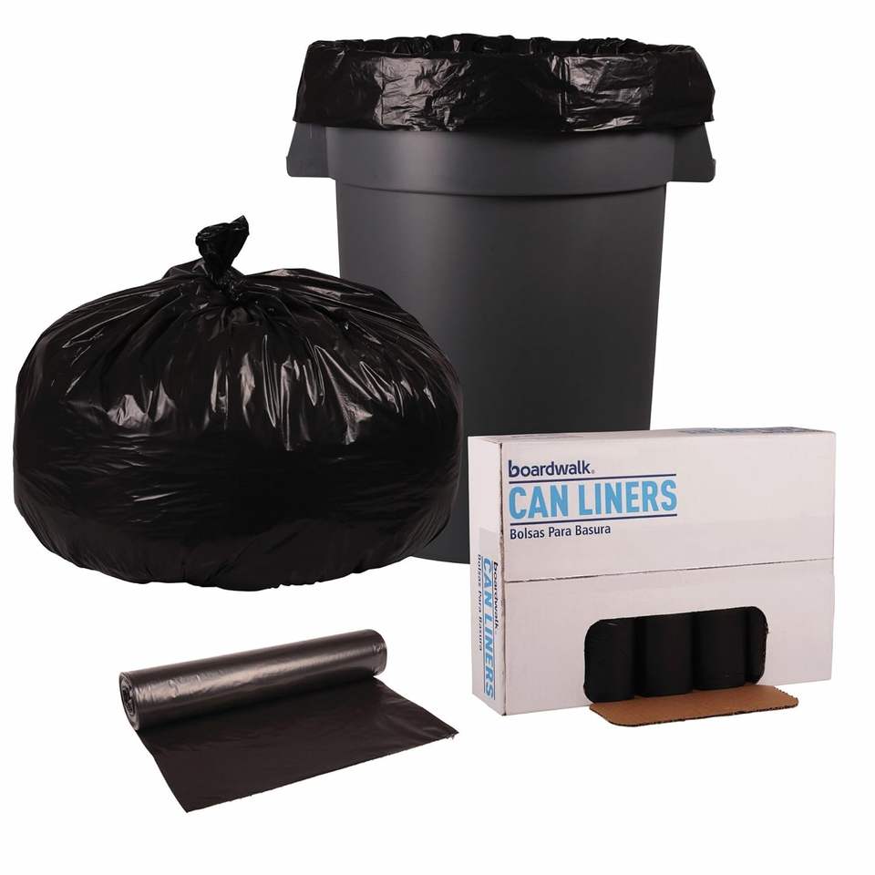 ถุงขยะสำหรับใช้ในครัวเรือน Boardwalk 518 SH-Grade Repro Can Liners ขนาด 43x47 สีดำ ความจุ 56 แกลลอน หนา 1.2 มิล บรรจุ 10 ถุงต่อม้วน แพ็ค 10 ม้วน