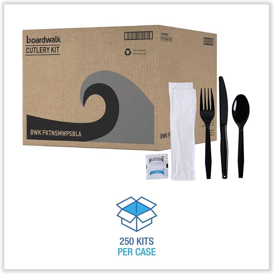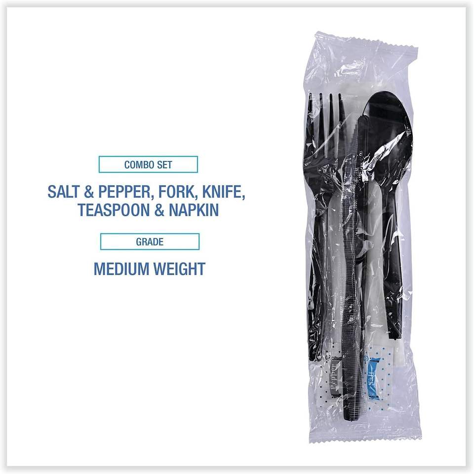 ชุดอุปกรณ์รับประทานอาหารแบบใช้แล้วทิ้ง 6 ชิ้น ประกอบด้วย ช้อนส้อม/มีด/ผ้าเช็ดปาก/ช้อนชา สีดำ สำหรับงานปาร์ตี้ บรรจุ 250 ชุด/กล่อง