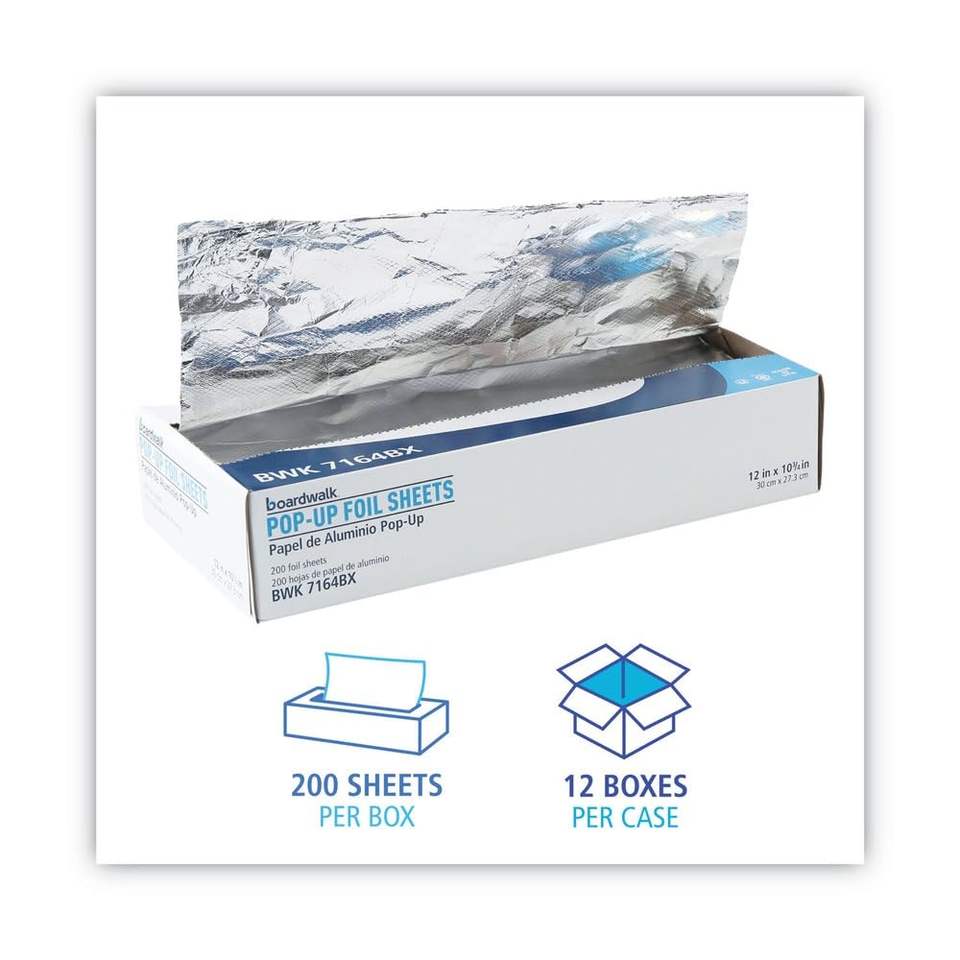 แผ่นฟอยล์อะลูมิเนียมแบบป๊อปอัพ Boardwalk 7164 ขนาด 12 x 10 3/4 นิ้ว สีเงิน แบบใช้แล้วทิ้ง บรรจุ 2400 แผ่น