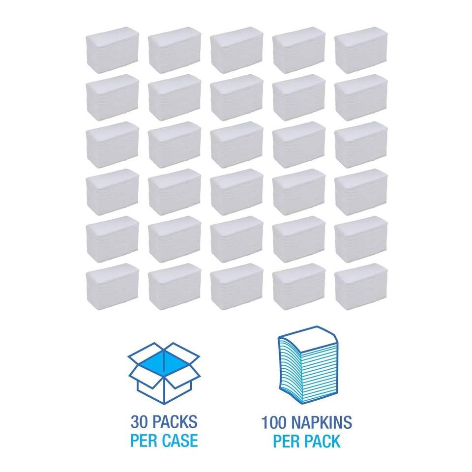 กระดาษเช็ดปากแบบใช้แล้วทิ้ง บอร์ดวอล์ค 8308 ขนาด 15x17 นิ้ว สีขาวนุ่ม 3 ชั้น พับได้ (30 แพ็ค แพ็คละ 100 แผ่น)