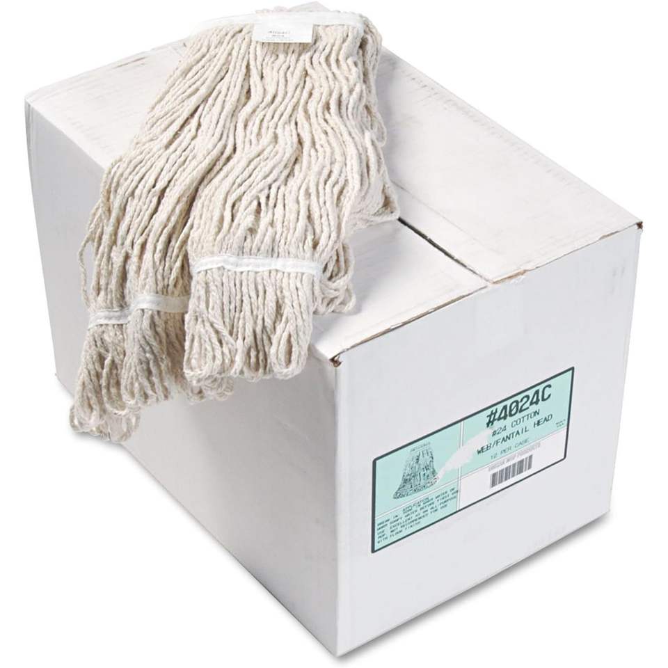 หัวไม้ถูพื้นแบบเปียก รุ่น Pro Loop Web/Tailband Cotton ยี่ห้อ Boardwalk รุ่น BWK4024CCT สำหรับทำความสะอาดพื้น รูปทรงสี่เหลี่ยมและสามเหลี่ยม ดูดซับน้ำได้ดี บรรจุ 12 ชิ้น/กล่อง