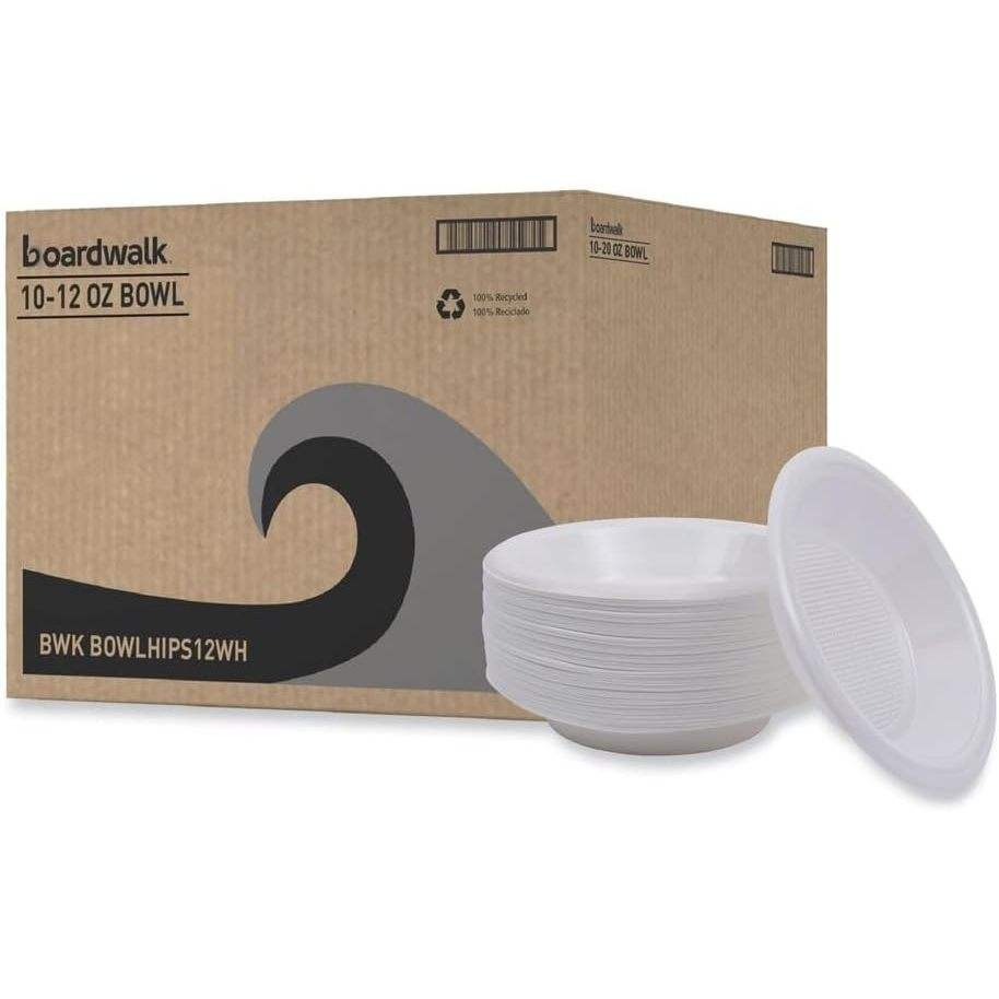Boardwalk BWKBOWLHIPS12WH Hi-Impact Disposable Bowls 10-12 Oz. Plastic White (1000/Carton)