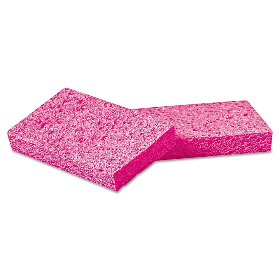 ฟองน้ำเซลลูโลสสีชมพูขนาดเล็ก Boardwalk CS1A ขนาด 3 3/5 x 6 1/2 นิ้ว หนา 9/10 นิ้ว สำหรับขัดทำความสะอาดในครัว (บรรจุ 48 ชิ้น/กล่อง)