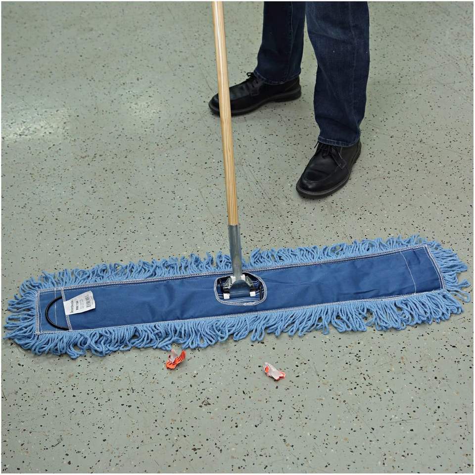 ชุดไม้ถูพื้นไมโครไฟเบอร์ Boardwalk HL365BSPC ขนาด 36 x 5 ฟุต 60 นิ้ว สีฟ้า/สีธรรมชาติ แบบห่วงพร้อมตะกร้าพลาสติก ด้ามจับโลหะ/ไม้ ขนาด 60 นิ้ว