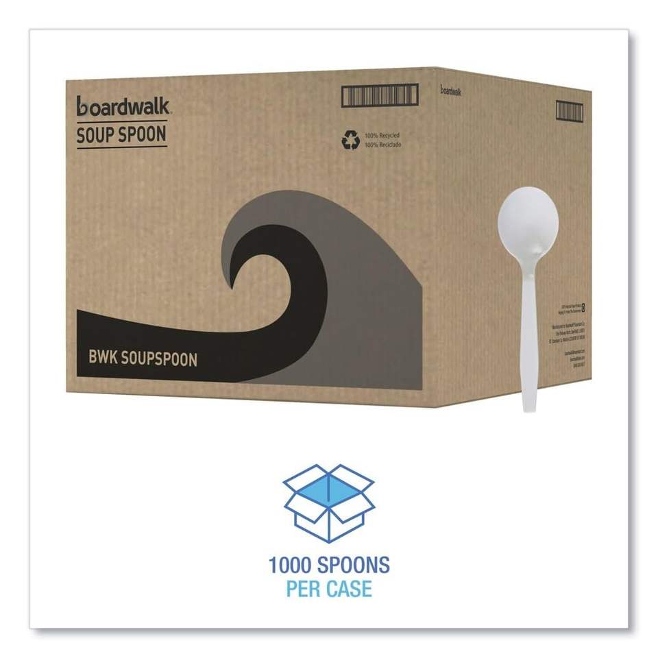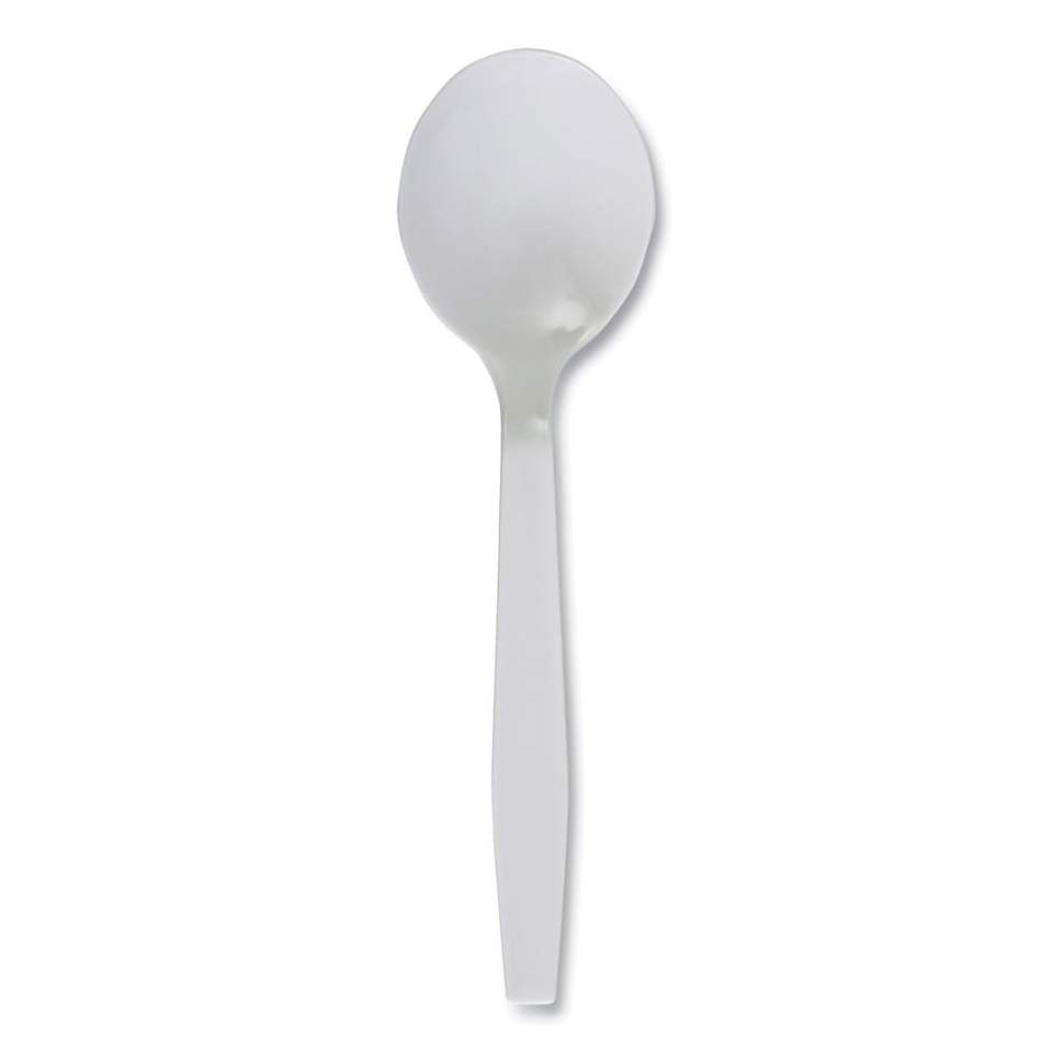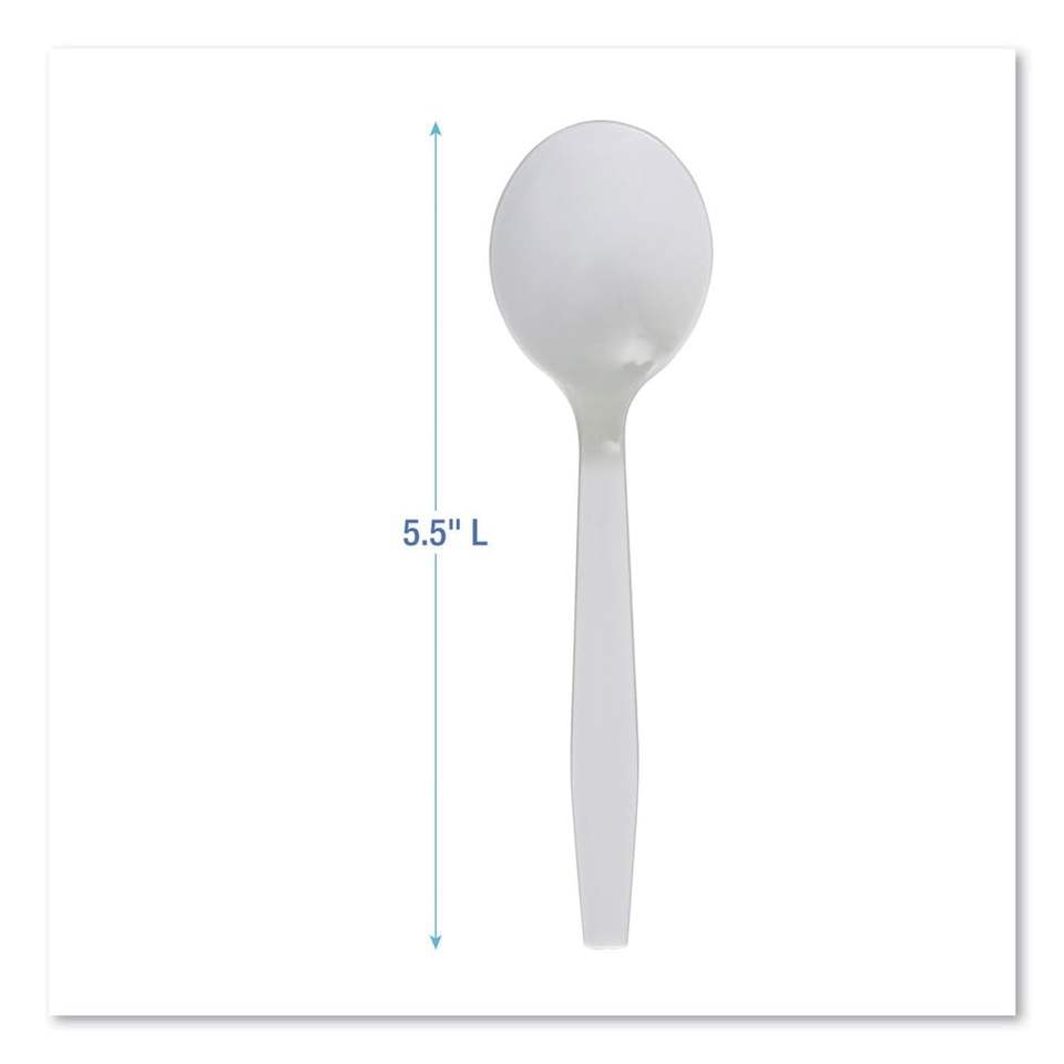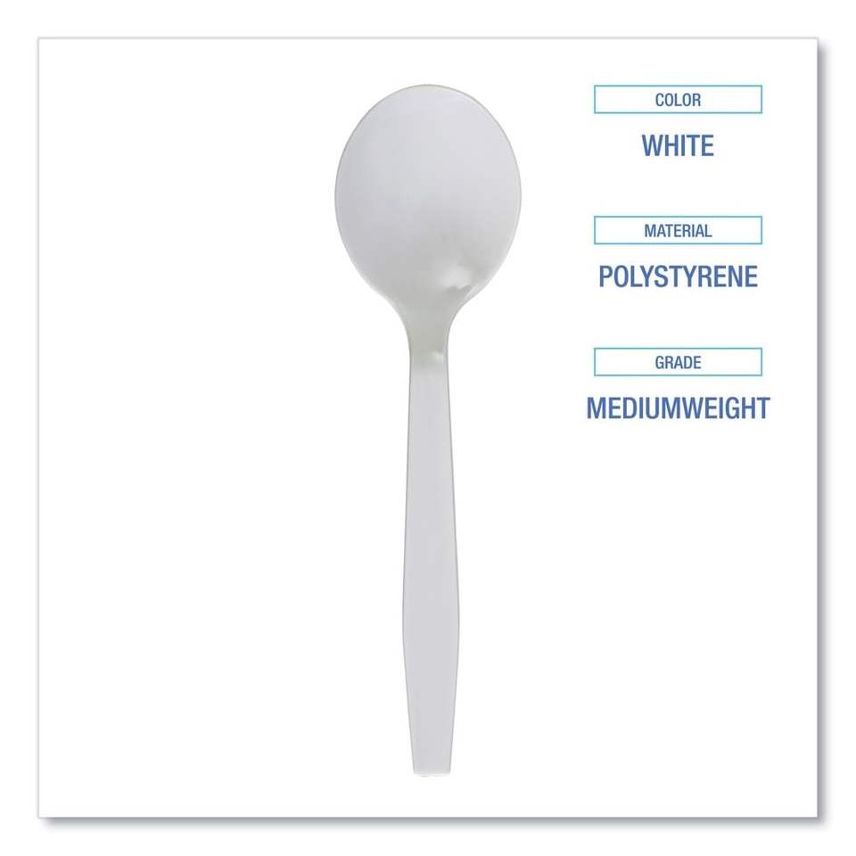 ช้อนซุปแบบใช้แล้วทิ้งสไตล์โมเดิร์น น้ำหนักปานกลาง ผลิตจากโพลีโพรพิลีน บรรจุ 1000 ชิ้น/แพ็ค สีขาว บรรจุในกล่อง