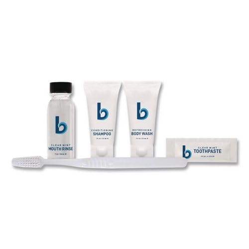 ชุดอุปกรณ์อาบน้ำแบบพกพาพลังงานแสงอาทิตย์ Boardwalk ชุดอุปกรณ์ลดการแพ้ 12 ชิ้น ประกอบด้วยน้ำยาบ้วนปาก ยาสีฟัน และครีมอาบน้ำ