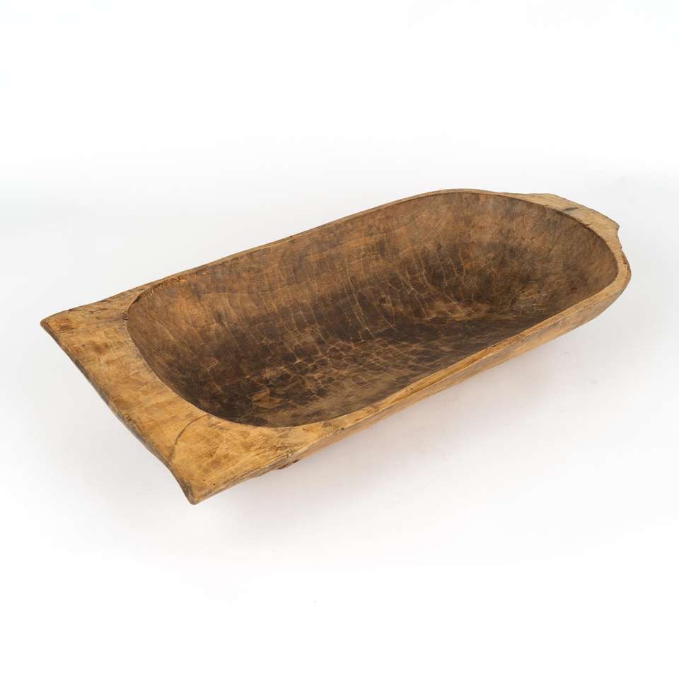 ชามแป้งไม้สำหรับตกแต่งโต๊ะรับประทานอาหารรูปทรงเรือชามขนมปังแกะสลักด้วยมือแบบเรียบง่ายสำหรับบ้านไร่และของประดับกลางโต๊ะ