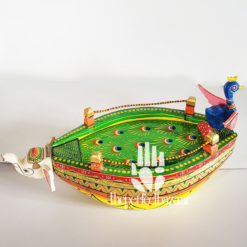เรือไม้ทาสีลายหัวนกยูงและช้างจาก Theperfectbazaar