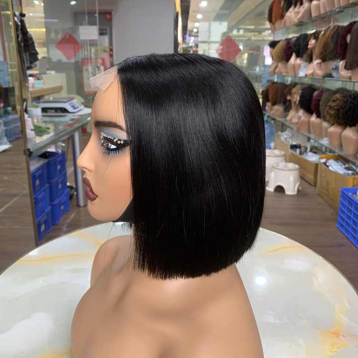 วิกผมบ๊อบผมแท้สำหรับผู้หญิงผิวสีดำ ขนาด 6 นิ้ว ขายส่ง 2x6 แสกกลาง ผมบราซิลธรรมชาติ วิกผมบ๊อบสั้น