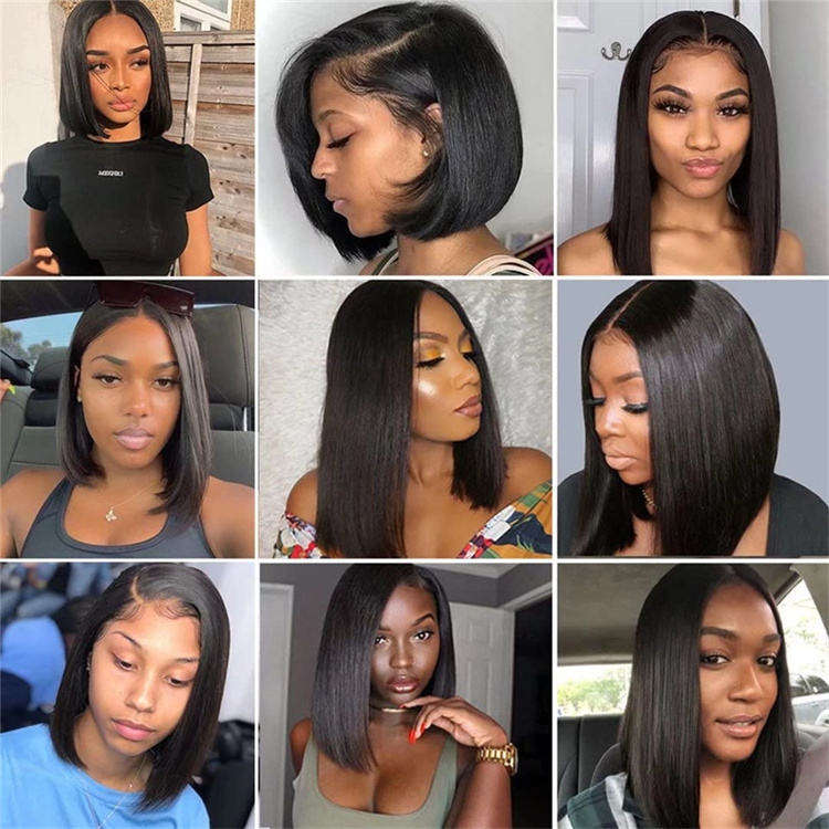 วิกผมบ๊อบผมมนุษย์วิกผมบ๊อบแบบสั้นสองชั้นติดลูกไม้ด้านหน้า