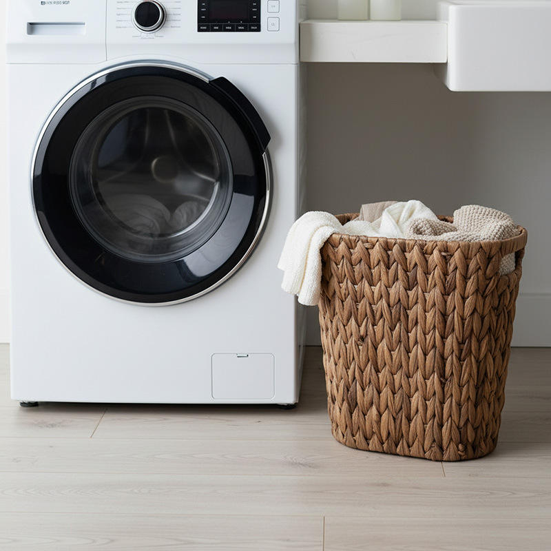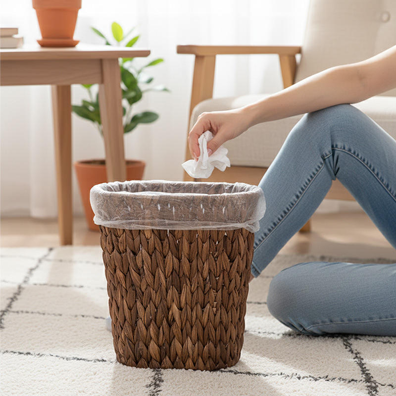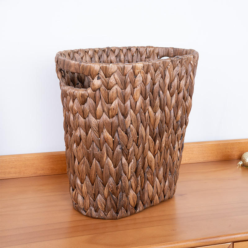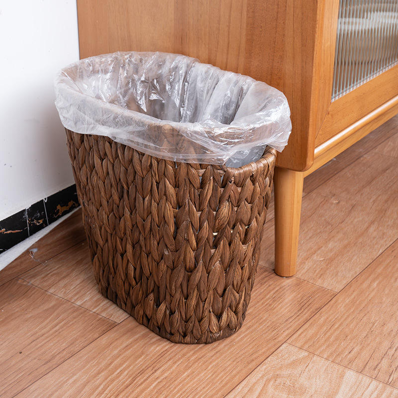 ตะกร้าใส่ขยะสานมือทรงกลมสีน้ำตาลกาแฟ แบบตั้งพื้น ทำจากหวาย สำหรับจัดระเบียบห้องนอนและห้องครัว