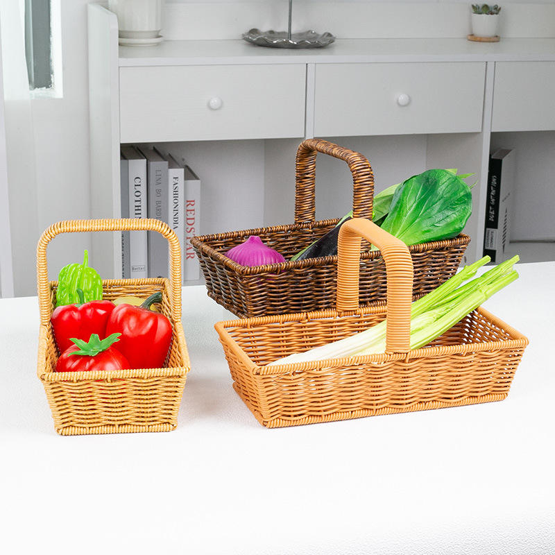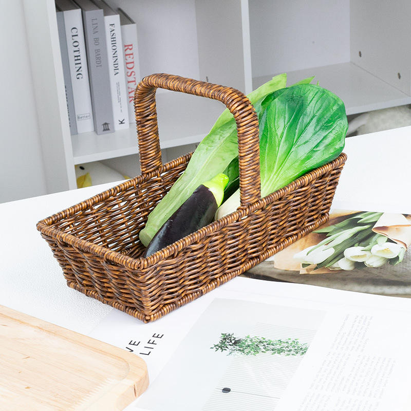 ตะกร้าสานทรงสี่เหลี่ยม Bobai สีน้ำตาลกาแฟ ตะกร้าเก็บของรักษ์โลก สำหรับใส่ขนมปัง ผลไม้ ปิกนิก ใช้กลางแจ้ง