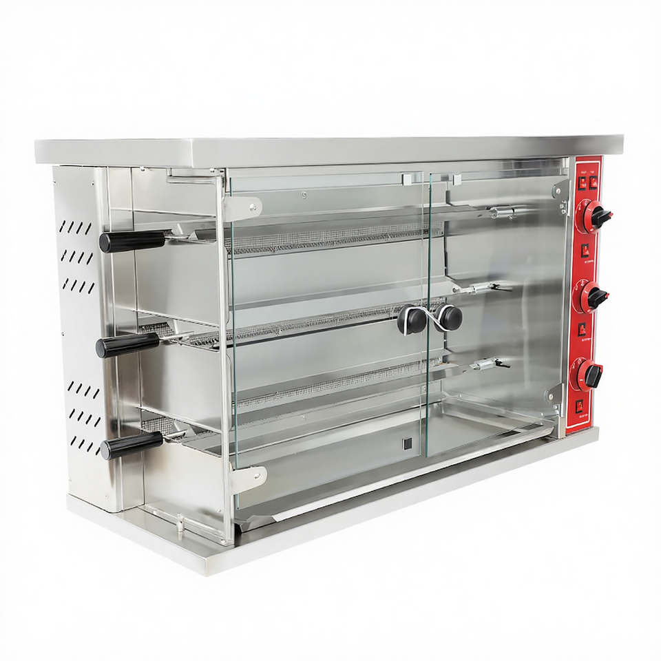 เครื่องย่างไก่แก๊สแบบ 3 แท่ง ยี่ห้อ Bochange ใช้งานง่าย ประสิทธิภาพสูง ผลิตจากสแตนเลสเกรดอาหาร สำหรับใช้ในเชิงพาณิชย์
