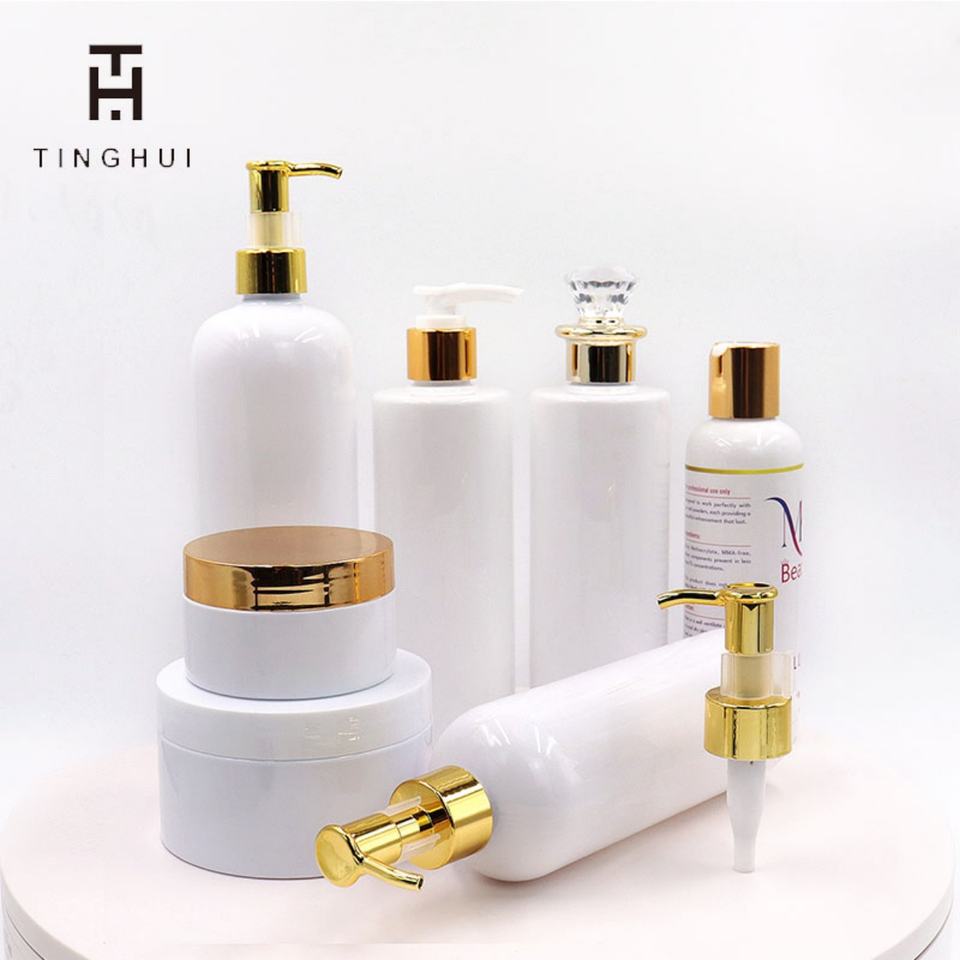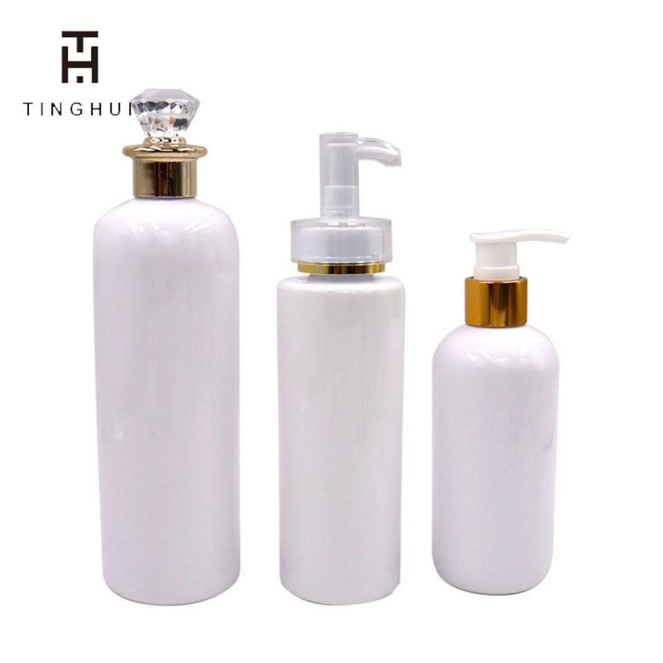 บรรจุภัณฑ์โลชั่นบัตเตอร์เหลว ขนาด 100 มล. 150 มล. 200 มล. 250 มล. 300 มล. 500 มล. ขวดพลาสติกใสสีขาวสำหรับแชมพู พร้อมฝาแบบเพชร