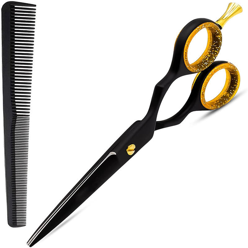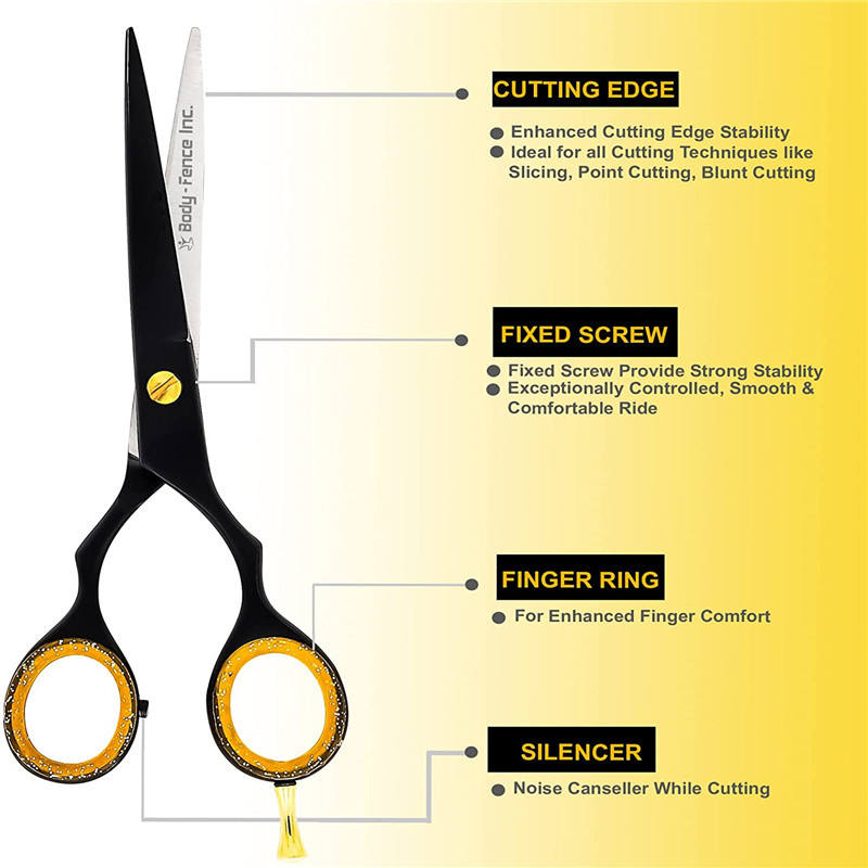 กรรไกรตัดผม Body Fence ขนาด 6 นิ้ว สีดำ แบบแบน สำหรับช่างทำผมมืออาชีพ ทำจากสแตนเลส อุปกรณ์สำหรับช่างตัดผม