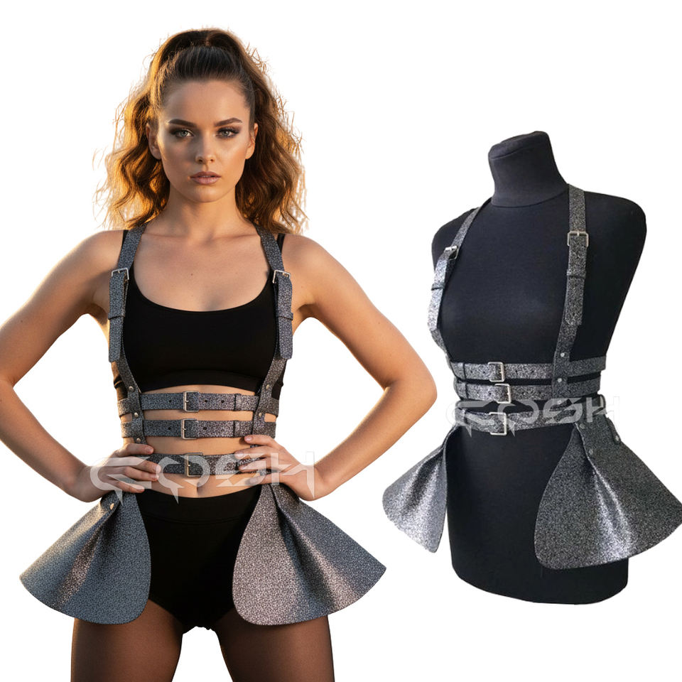 เข็มขัดรัดเอวทรงคอร์เซ็ทแฟชั่น พร้อมกระโปรงทรงเปปลัมและสายรัดปรับระดับได้