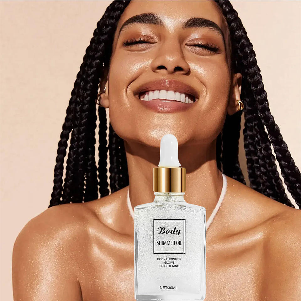 น้ำมันบำรุงผิวประกายชิมเมอร์ โลโก้สั่งทำได้ กลิ่นหอมธรรมชาติ ออร์แกนิค ชิมเมอร์วิ้งค์ๆ น้ำมันบำรุงผิวฉลากส่วนตัว สีขาวทองประกายชิมเมอร์