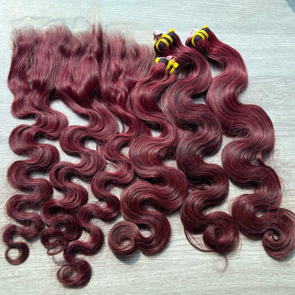 ผมมนุษย์แท้ผมจริงผมลอนสีเบอร์กันดีสำหรับคนเวียดนาม