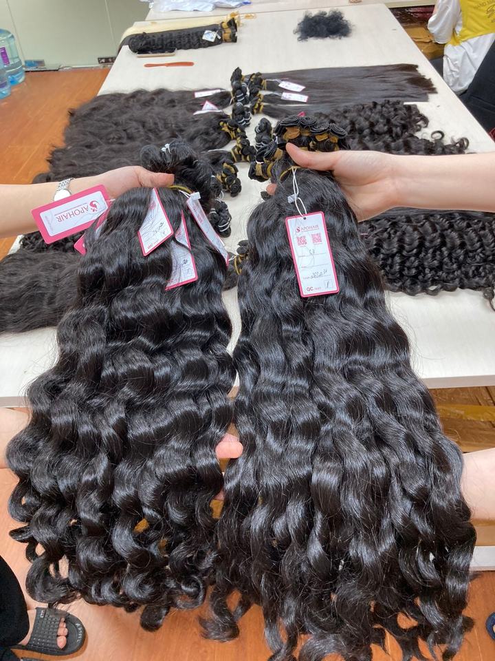 ผมต่อแบบเป็นลอนคลื่นบริสุทธิ์ของคนยุโรปสำหรับเครื่องจักรผมปลอมแบบสองชั้น