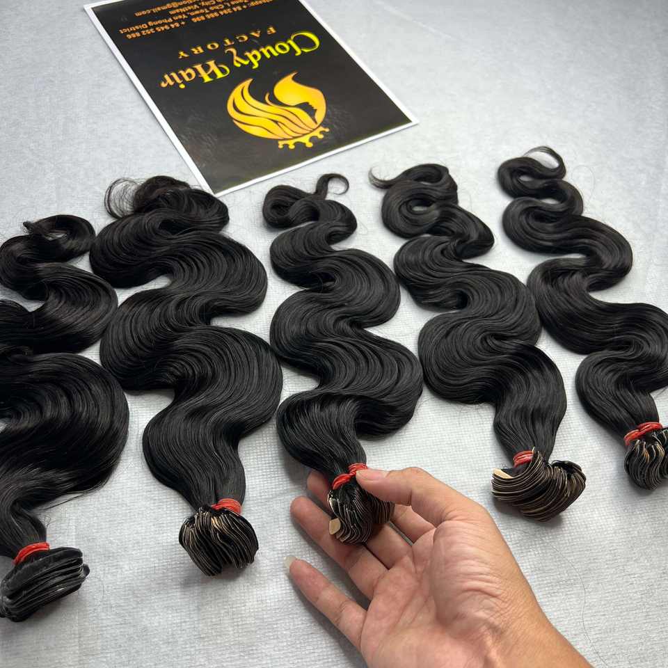 เทปคลื่นร่างกายต่อผมแบบเวียดนามหนังกำพร้าแบบดิบ