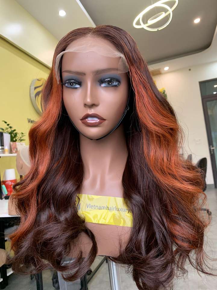 วิกผมลอนแบบมีลูกไม้ด้านหน้าใสสีดำธรรมชาติ30นิ้ววิกผมคนเวียดนาม