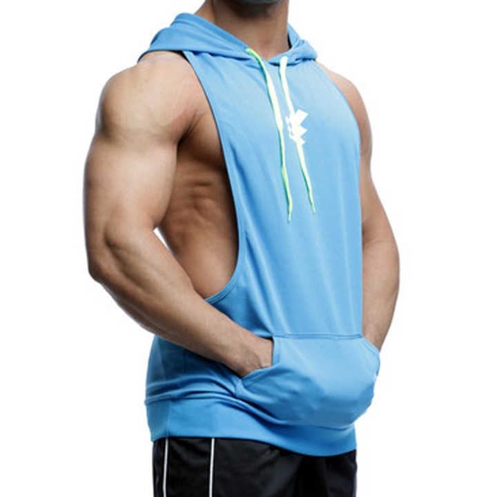 เสื้อแขนกุดมีฮู้ดแขนกุดสำหรับผู้ชายเสื้อกล้ามสร้างกล้ามเนื้อทำจากผ้าฝ้าย