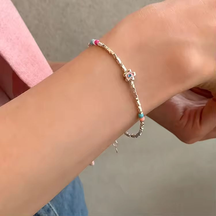 กำไลข้อมือลูกปัดโบฮีเมียนสำหรับผู้หญิง เงินแท้ 925 กำไลแฟชั่นเรียบง่ายสำหรับผู้หญิงและเด็กผู้หญิง