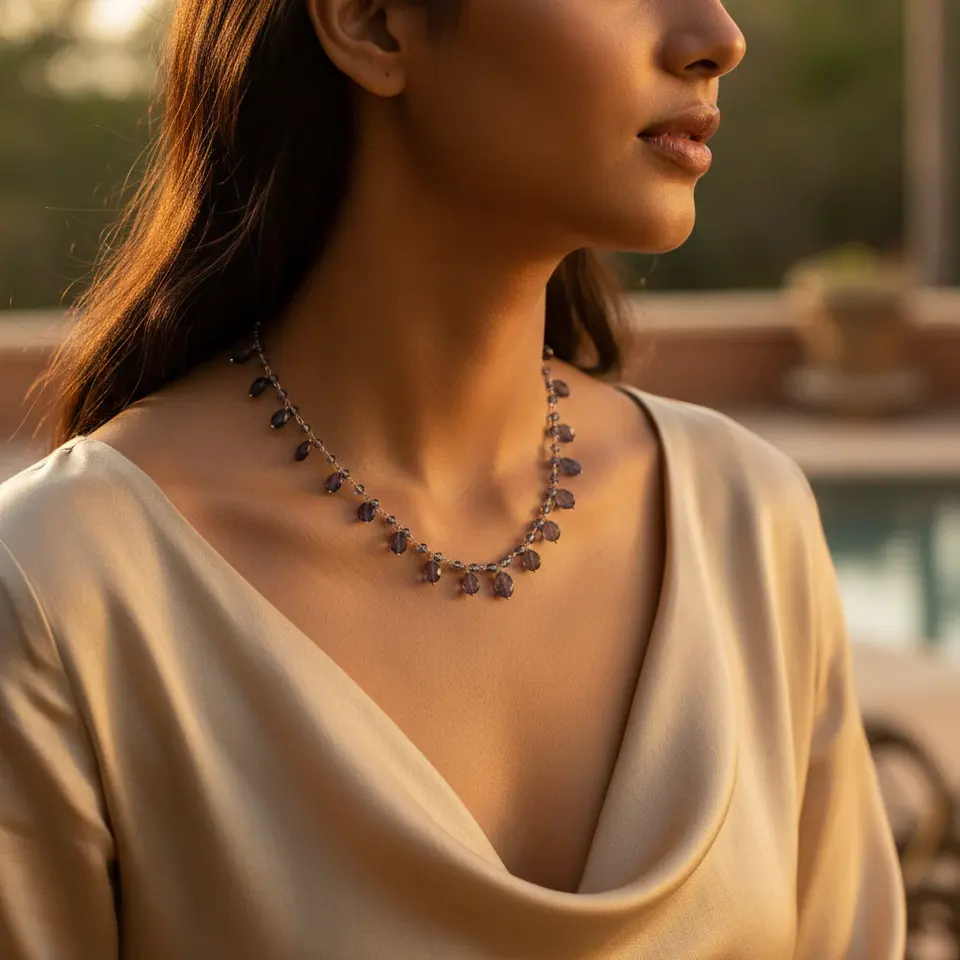 สร้อยคอโบฮีเมีย คอรัล ควอตส์สำหรับผู้หญิง ดีไซน์ประณีตด้วยลูกปัด