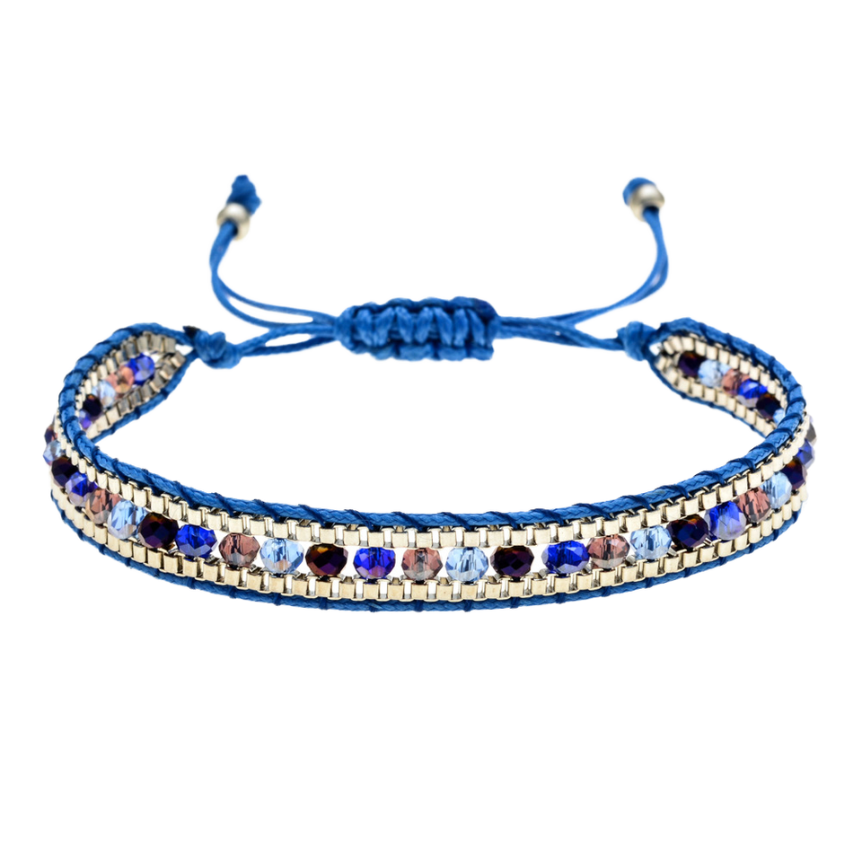 สร้อยข้อมือทำมือเชือกแว็กซ์ถักแบบปรับได้สำหรับทุกเพศ ประดับด้วยลูกปัดแก้วคริสตัลสไตล์โบฮีเมียน ของขวัญ