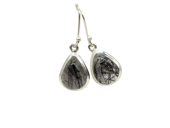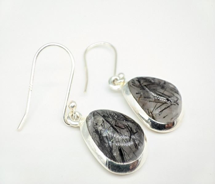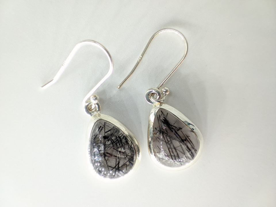 ต่างหูทรงหยดน้ำสไตล์โบฮีเมียนประดับด้วยแร่รูไทล์สีดำ ทำจากพลอยธรรมชาติ เงินแท้ 925 งานแฮนด์เมด เครื่องประดับผู้หญิง สไตล์ชาติพันธุ์ วินเทจ