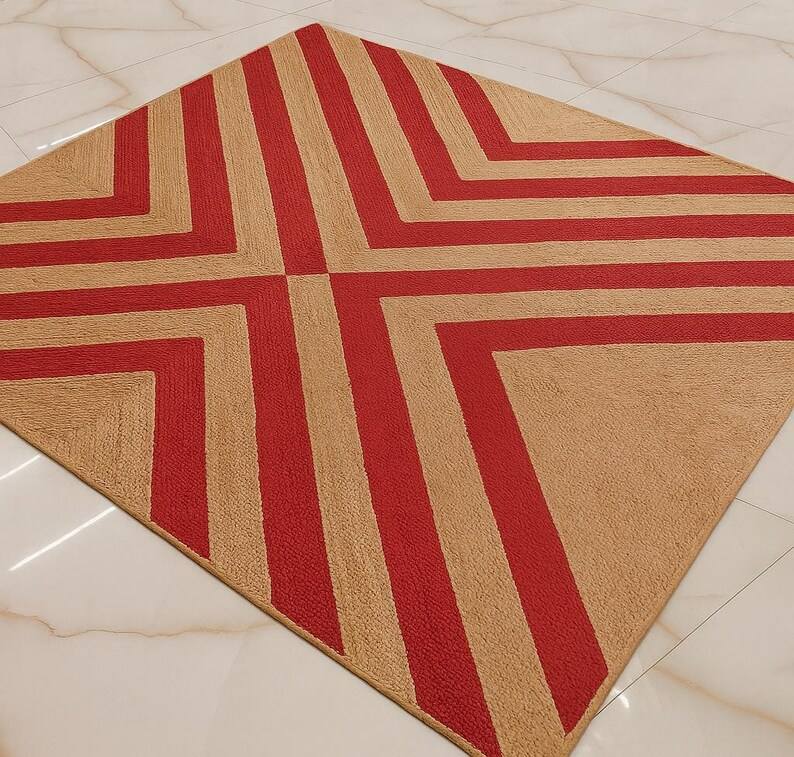 พรมเชือกปอแบบโบฮีเมียนลายเชฟรอน พรมใยธรรมชาติถักสำหรับห้องนั่งเล่น