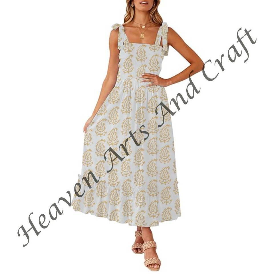 หมายเลขรุ่น:Hand Block Printed Spaghetti Strap Dress