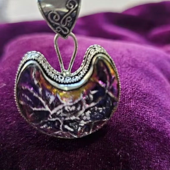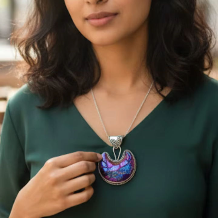 โมเสกพระจันทร์เสี้ยวสไตล์โบฮีเมียน ตัวเรือนเงินสเตอร์ลิง งานฝีมือประดับด้วยมุกสีม่วงรูปพระจันทร์ สำหรับงานหมั้น งานแต่งงาน และงานเลี้ยง