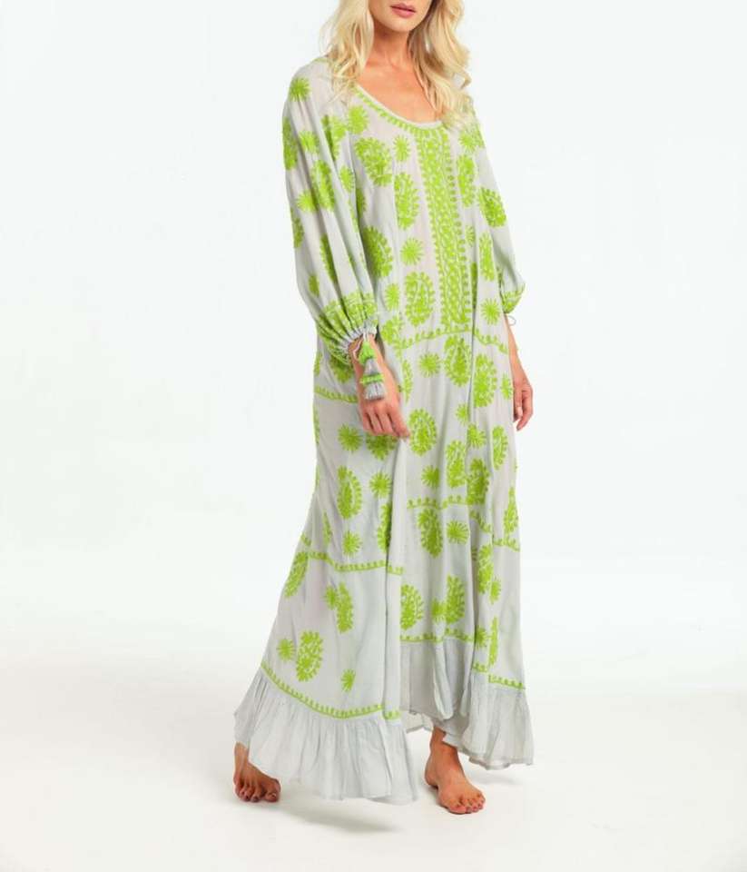 เดรสยาวปักลายแขนพองสไตล์โบฮีเมียน, เดรสยาวแขนพองทรงหลวมสไตล์โบฮีเมียนแฟชั่นฤดูร้อน