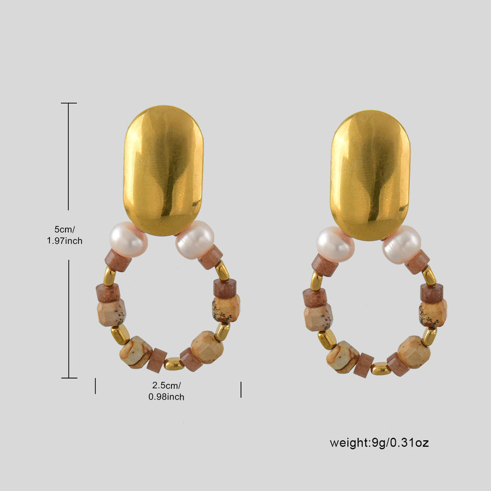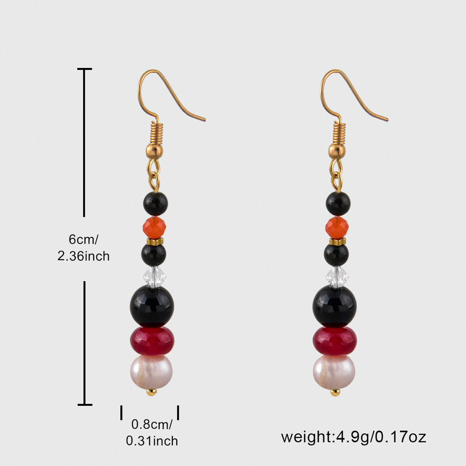ของขวัญต่างหูลูกปัดมุกหินธรรมชาติหลากสีแนวโบฮีเมียน