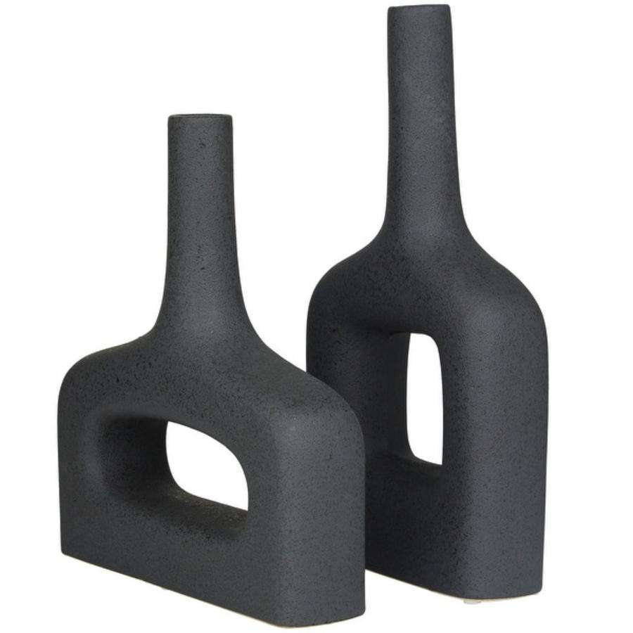 แจกันดอกไม้โบฮีเมียนกระถางดอกไม้สีดำด้านสำหรับห้องนั่งเล่นชุดแจกันแฟนซีโลหะตั้งโชว์แจกันสไตล์ย้อนยุคสไตล์โมเดิร์น