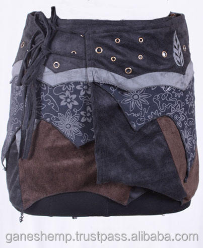 กระโปรงมินิสไตล์ยิปซีพิมพ์ลายลูกไม้ด้านข้างสีกันเมทัลแบบโบฮีเมียน HHCS 133 a