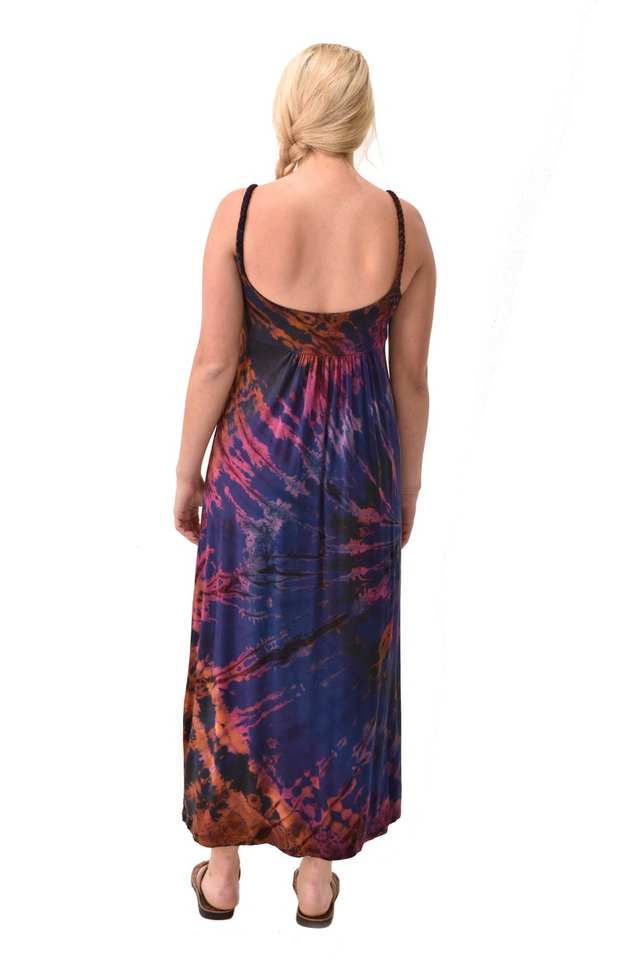 เดรสยาวลายมัดย้อมสไตล์โบฮีเมียน ทำมือจากผ้าเรยอนผสมสแปนเด็กซ์ เหมาะสำหรับงานเทศกาล