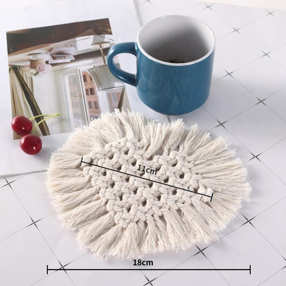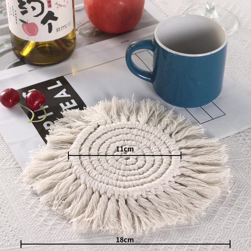 แผ่นรองแก้วทำมือจากผ้าฝ้ายทอหนาแบบเรียบง่าย เป็นมิตรกับสิ่งแวดล้อม พร้อมพู่ห้อย รูปทรงกลม ลายเรียบ สำหรับตกแต่งบ้าน
