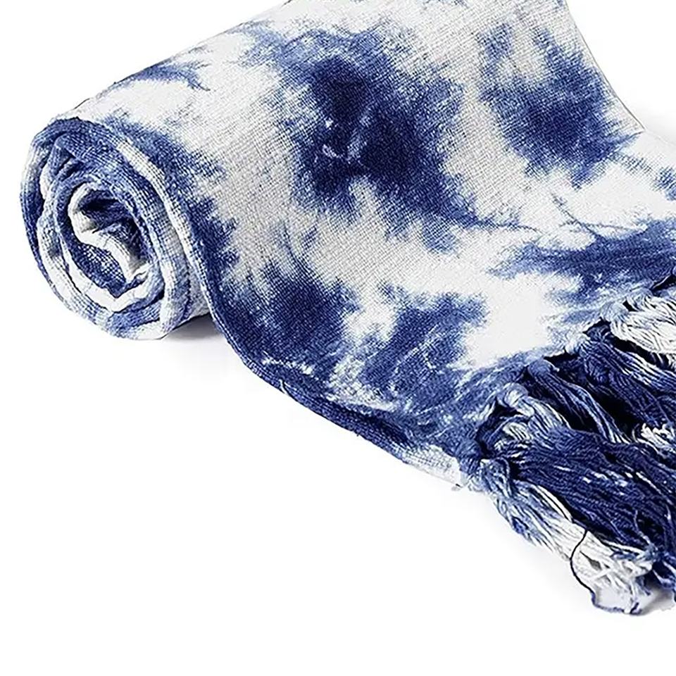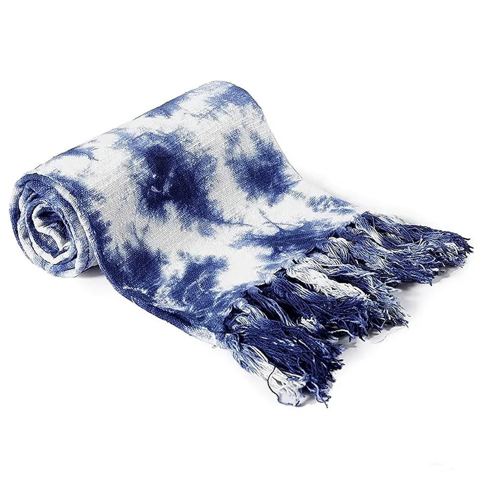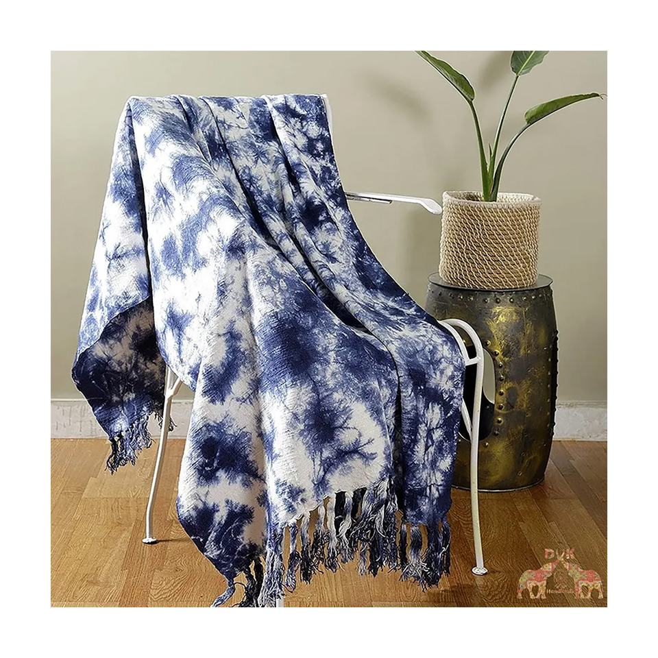 ผ้าห่มโยนผ้าฝ้ายโบฮีเมียนย้อมสีสำหรับตกแต่งห้องนั่งเล่นงานแฮนด์เมด